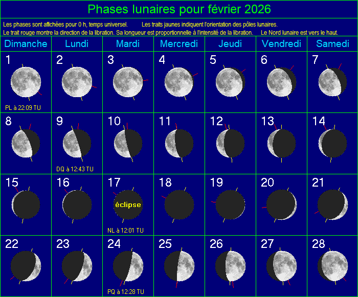 | Occultation : pas d'occultation d'étoile ou de planète par la Lune à la date sélectionnée. |