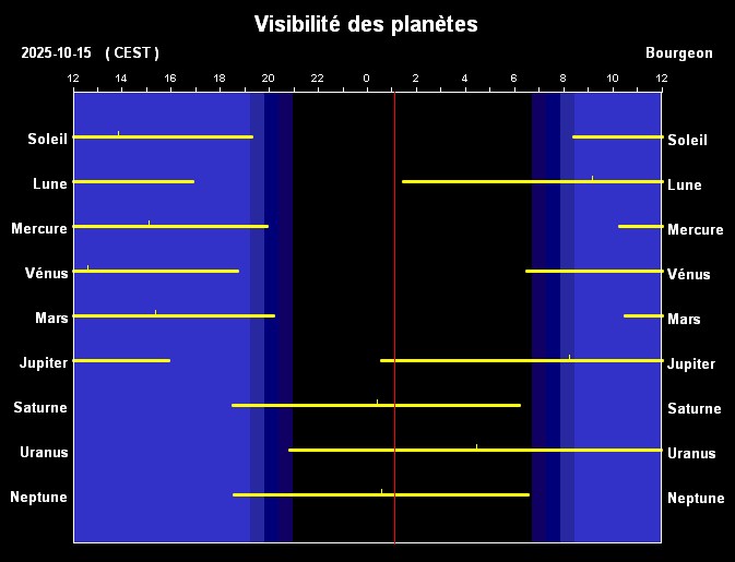 Visibilité des planète à long terme Mars Jupiter Saturne Uranus Neptune |