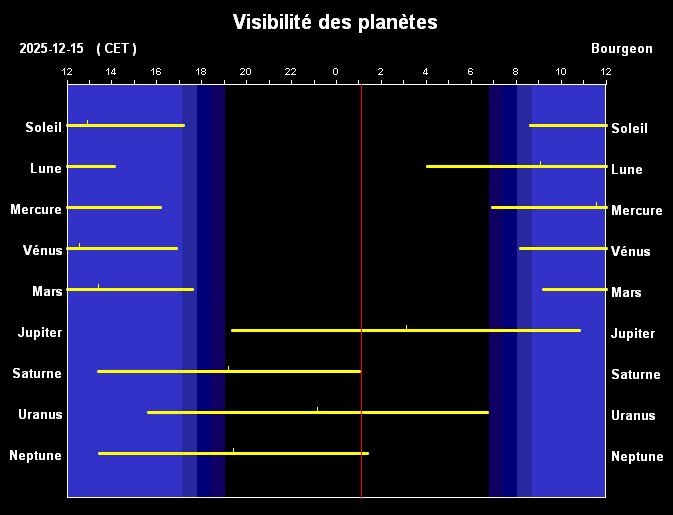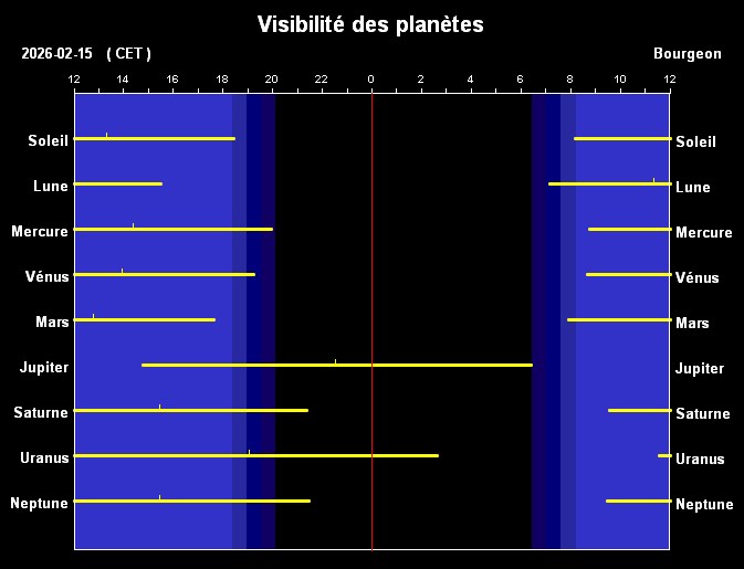 | Visibilité des planète à long terme Mars Jupiter Saturne Uranus Neptune |