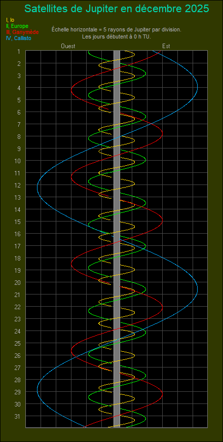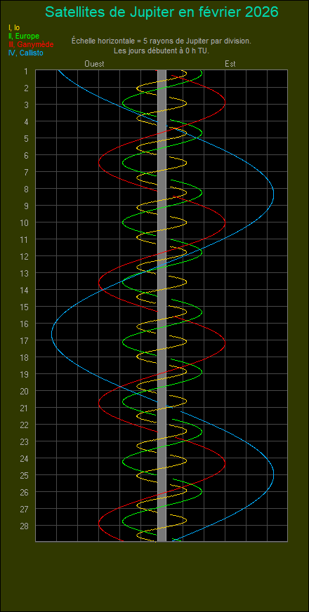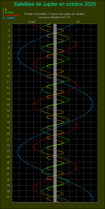 ~~~~ Prévision de la position des satelittes Galiéens de Jupiter : Io (I), Europe (E), Ganymède (G) et Callisto (C).